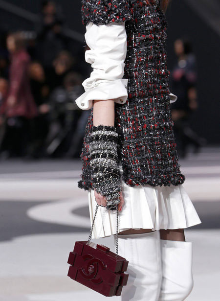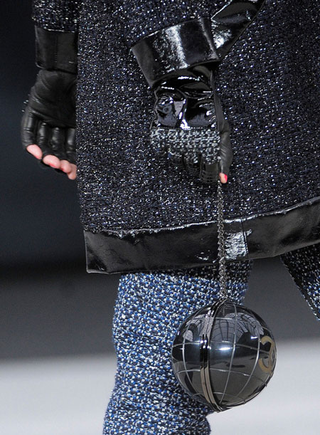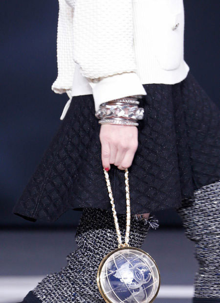一向以优雅高贵为传统的CHANEL,在老佛爷Karl Lagerfeld的设计之下也变得很玩乐,除了早前呼啦圈手袋之外,老佛爷还模仿LEGO乐高组件,设计了几个塑料块模样的Clutch手包和链带包。而2013秋冬最新秀场更是围绕地球主题,地球仪形状的双C是老佛爷的新创意。