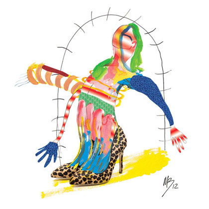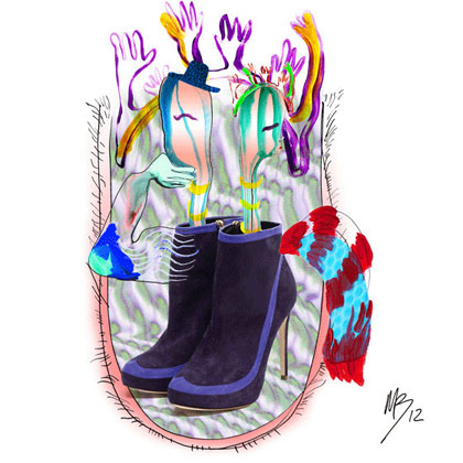 在市面上的鞋子越来越彼此雷同的现在,也许你需要来自第三方的信息来帮助你理解它(某一品牌)的特别之处。艺术家当然是最好的选择,用另一种审美的角度来劝说消费者买单,Rupert Sanderson这一季就找来艺术家Margot Bowman为品牌的鞋子绘制插图,表达方式也很直白,噢,鞋子就是天堂!看着这些色彩斑斓热情洋溢的图像,是否激起了你沉寂已久(也许不那么久)的购物欲呢?