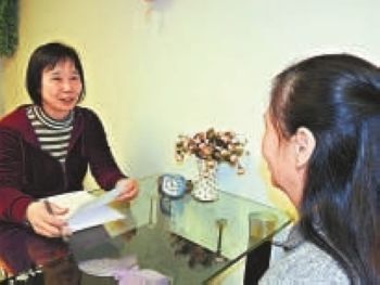 梁秋莎(左)正接受“双非”家长查询。她强调,夫妻关系触礁,最无辜就是孩子,她劝喻打算在香港生儿育女的应谨慎深思。