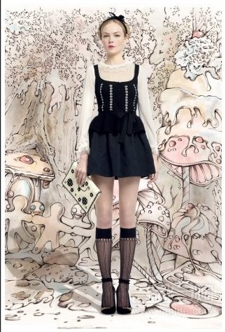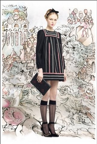 Red Valentino 是 Valentino 的年轻副线,2013 秋季设计延续主线的浪漫风格,印花、蕾丝、蝴蝶结一向是品牌常用的元素。来到今季主打是碎花图腾和泡泡裙,少女气息浓厚,修身的剪裁让款式更常长青!加上背景的手绘风格,让整个系列更梦幻和带有童话感觉。相信这个系列一定深得甜美女生喜爱。