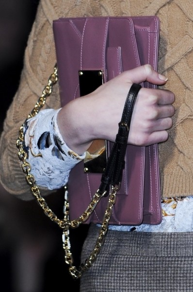 N°21 2013秋冬系列的秀场上为我们诠释了下一季街头新潮流——中型链条包就要轻松拿在手里才时髦!