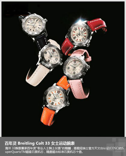 海洋33腕表秉承百年灵"专业人士腕上仪表"的精髓,搭载经瑞士官方天文台认证(COSC)的SuperQuartzTM超级石英机芯,精度超出标准石英机芯十倍;配备双面防眩且防刮花的蓝宝石表镜,旋入式表冠,以及坚固可靠的精钢表壳,防水性能可达500米,呈现出对于–款女士腕表而言极为少见的卓越性能,彰显现代女性聪颖大气的超凡魅力。