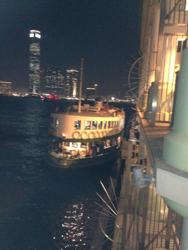 拎着一大堆东西老公忽发奇想,要带我去吹海风,打车来到码头乘坐天星小轮到对面的海港城