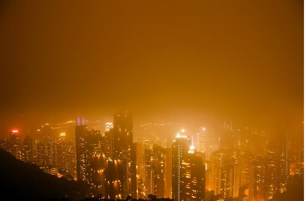 虽然在香港工作了近两年,不过这还是我第一次去山顶,后来被同事告之去山顶应该看当天的天气,否则雾太大什麽都看不到。而我就这样那麽幸运地碰上大雾,并且当时穿着很少,山上很寒冷,大雾下的夜景,基本看不到什麽。