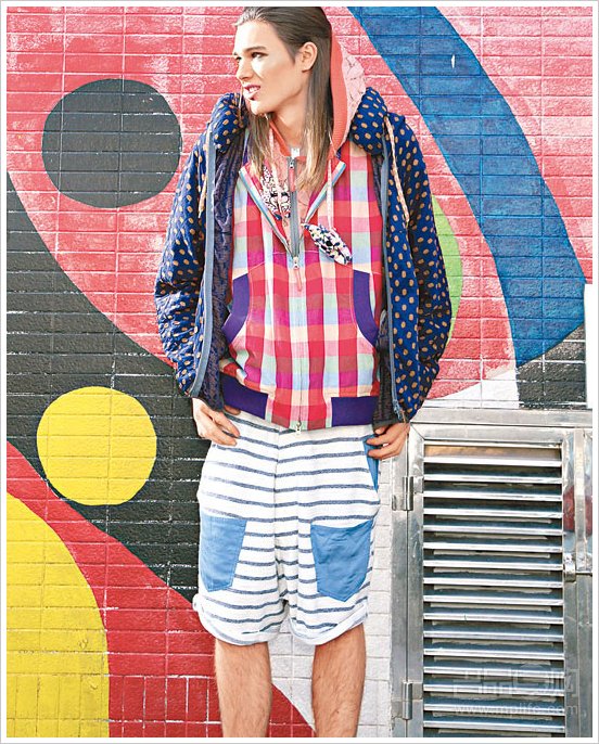 蓝×橙色波点水泡领外套 $5,299、红×蓝色格仔外套(Showpiece)、橙色有帽外套 $4,999、白×蓝色横间短裤 $1,999