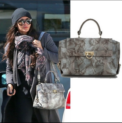 Salvatore Ferragamo的经典包包也是不少明星的最爱,这款蛇纹手包增添了不少狂野性感。