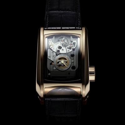 时隔两年,帕玛强尼再度推出人们期待已久的Bugatti Super Sport 全新玫瑰金款。Calibre Parmigiani 372 手动上弦机芯(10天动力储存)采用双面设计,以适应布加迪系列新款腕表的外形轮廓。腕表戴在手腕上时,机芯呈90°显示。机芯上方的平衡摆轮和擒纵轮桥板构成了一道弧线,与布加迪跑车的椭圆形外观颇为相似。摆轮和位于中央位置、标有10天动力存储刻度尺的圆形动力存储板桥都清晰可见。机芯具有惊人的美学特征,表盘采用黄金制作,表面覆盖黑色蛋白石,意在向布加迪威航16.4超级跑车(Bugatti Veyron 16.4 Super Sport)表示敬意,表盘中央部分为镂空设计,透过此处可看到时针轮。腕表的流线型外形与1200匹马力的布加迪威航跑车相似,还配备了特制爱马仕表带。
