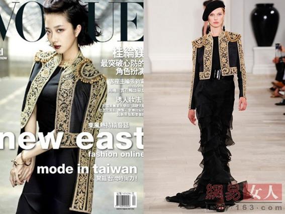 周冬雨身着valentino2013春夏系列裸色长裙登上杂志封面。又是一张妆容很糟而且p过头的封面。周冬雨的眼形属于八字眼,用浓厚眼影不仅没将外眼角上挑,反而更突出了外眼角相对于内眼角的位置偏下;周冬雨的鼻子很挺,但如此高光的突出,反而显得鼻子太过硬朗;周冬雨的嘴唇属于嘟嘟嘴,虽然纯色并不浓,但也好似香肠嘴。裙子还是美的,不过建议封面背景用暗色,这样更突出服装,也显得有质感。