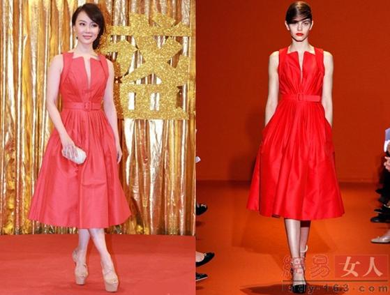 陈数身着Andrew Gn2013春夏系列红色连身裙亮相。唇彩与裙子颜色一致,造型完整,朱红色本身也不会过于浓烈;妆容精致,发型还成;小巧白色(或银色)手包提升档次。裸色高跟鞋颜色还行,但这鞋跟和防水台高得坏比例。