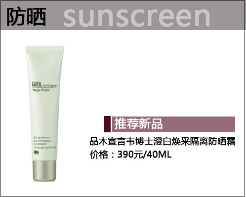 美白几乎是每个MM追求的护肤境界,所谓一白遮三丑,肌肤的白一直以来都最符合大众审美观,而美白更是更防晒离不开的,要想肌肤美白一定要做好防晒,小编精选出本季美白和防晒的新品,让你在人群中白得出众,更迷人,下面让小编为你推荐啦!