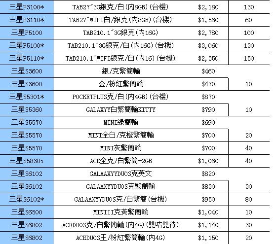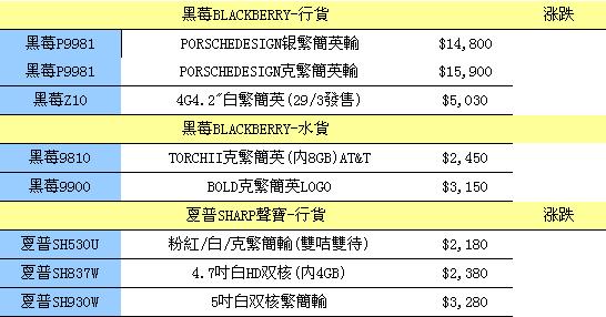 以下报价,如表内无特殊说明,则为原装配件的行货/后行/水货/上台机报价,一般来说原装配件为一电一充,“克”意思为黑色,“繁简英”是指手机所支持的语言,“繁简输”是指手机支持的输入法,“笔画”是指手机的键盘有笔画刻字。