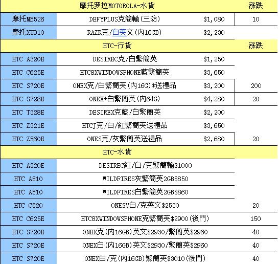 本周摩托罗拉、HTC手机行情One X行货降至3K2