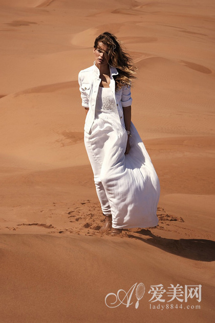 无垠沙漠间的纯白搭配,塑造出一位奔走在寻找生命真谛的途中的勇敢女性。