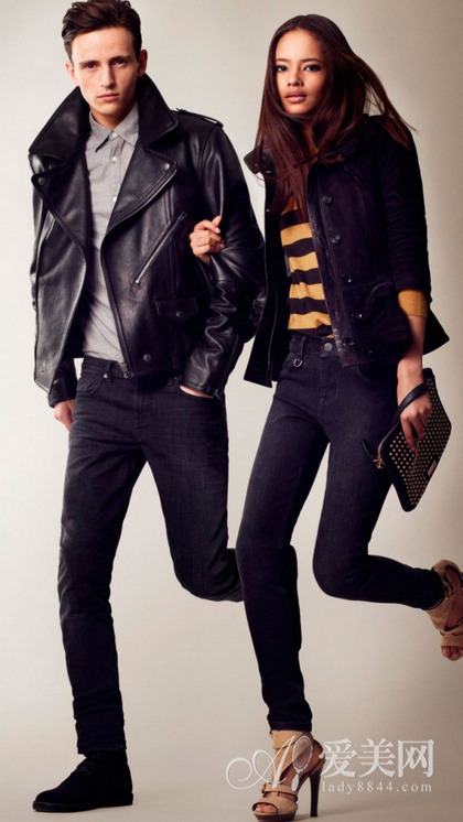两位男女模特的整身LOOK同为深色系的夹克与牛仔裤的搭配,表现着情侣间的默契十足。不妨与你的另一半一试。