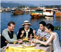 沿西贡市中心海滨划设而成的西贡海傍广场,是海鲜菜馆的集中地。菜馆外的玻璃鱼池宽大明亮,各式鲜活的海鲜游走其中,任君挑选,再交给菜馆精心烹调,风味极佳。西贡区的海岸风景优美宜人,让顾客在就餐之余尽情欣赏。您可在小镇上随意蹓跶,品尝地道的海鲜美食,“蒜蓉蒸虾”、“炒墨鱼”及“咖喱蟹”都是招牌推荐。