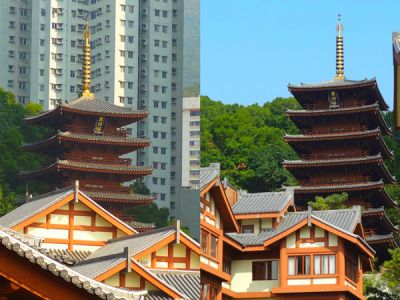 志莲净苑是一座庙宇,其木构建筑群仿照唐代艺术风格设计,南莲园池则是个古式园林,两者相互毗连,虽位处繁华喧闹的市中心,但别具宁静平和的气息。这里是一方净土。