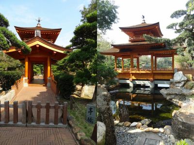 第八景亭桥。园内建筑物构筑木材是从非洲进口的榉木,防潮防虫,硬度高,造型效果好。建筑物从外表看均为木质结构,但内部实为钢结构,这样既能保证外观与整体园林风格相契合,也能保持建筑物长期稳固。