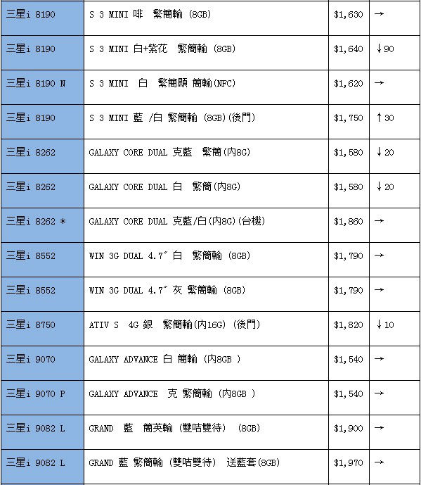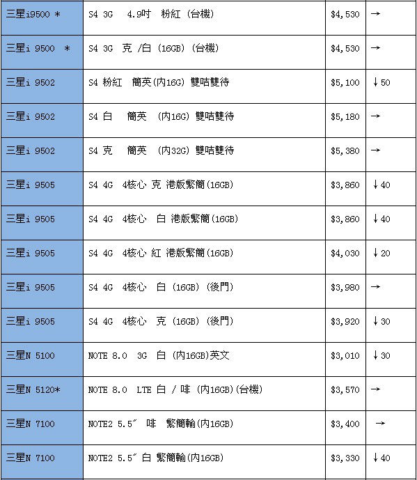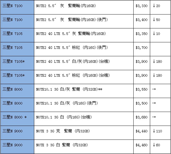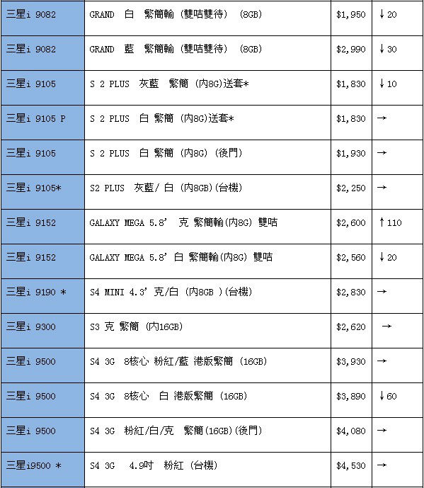 如表内涨跌栏为空白,则表示上期没有这款手机报价。
