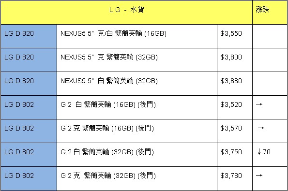 LG手机依然是最具性价比的,Nexus5又有报价了,暂时价格稍高,还有下降空间,不过传闻某些地区出现了热炒,喜欢的朋友可以保持关注。热门的还有G2,价格与Nexus5相当,屏幕更大,也非常值得考虑。