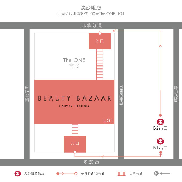 源自英国的名牌百货佼佼者Harvey Nichols率先为您带来宾至如归的美容购物体验。在2010年12月,迪生集团于尖沙咀The ONE商场开设Beauty Bazaar。它坐落于繁华都市香港尖沙咀,只须从尖沙咀地铁站步行5分钟即可到达。