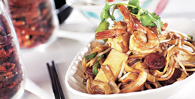粉和油面用黑酱油、甜酱油和辣椒炒香,配鲜虾,甜辣可口。师傅特意把甜度调低,想吃正宗风味的,告诉赖师傅就可以了。