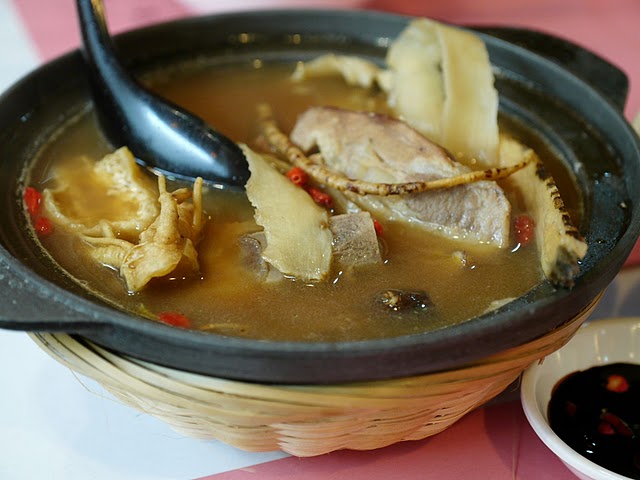 当归、北芪、党参等十九种药材配猪大骨和鸡骨煲够四个半小时,一天只够时间煲两回,每回只有十五碗供应,想喝就要抓紧。