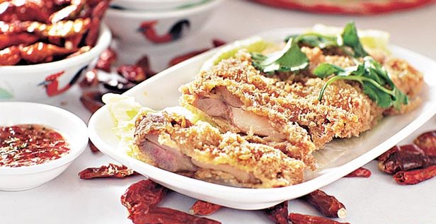 海南鸡也有吉列版?原来这是星洲大牌档后生一辈最爱的至潮吃法,嫩滑鸡腿肉炸至香口,蘸酸甜辣椒汁,相当开胃。