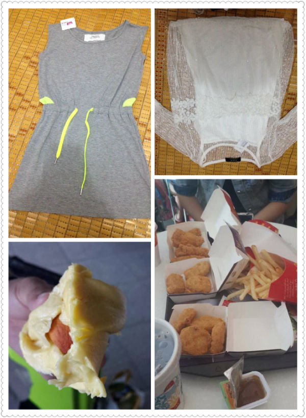 吃完早餐赶赴东荟城,本来想买鞋子之类的,发现运动品牌完全入不了眼,时间还有一下午可以消磨,我们三女的就在麦当劳等,老公和姐夫又赶回铜锣湾买东西,当时没考虑好,时间预估错误,而且东荟城确实没啥好买的东东。不过麦当劳确实比国内的好吃。空调太给力,只能换着出去逛逛,怕被冻死啊。。。结果又在万宁买了点面膜给老妈和自己,终于在东荟城找到了卖水果的地方,三天都没见到水果店啊,没吃到便宜的车厘子,只买了一盒大榴莲,表示香港榴莲超甜,甜到吃第二块就腻味了的甜。。。没事干打发时间的时候,去店里淘了两件衣服