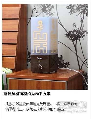 造型很有中国味道,稳重与时尚兼备的一款加湿器。特别之处在于其夜灯功能,非常适合摆放于床头,这样多功能小家电的设计也是当代的潮流趋势。虽然这款加湿器可作夜灯,但切记不要整晚使用加湿器,使用加湿器时间过长会增加患呼吸道疾病的可能。