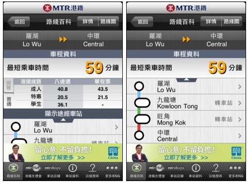 路线方面根据苹果官方建议,中环站以及香港站是离IFC Mall最近的。从罗湖或者福田口岸(即落马洲站)出发去中环比较方便,就是它了。这里有一款名为“MTR Mobile”的iOS免费软件,有需要的朋友可以下载。