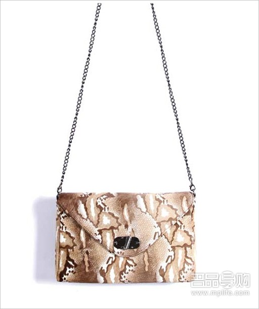 点评:豹纹、金属链、细背带都是彰显女性特质的流行元素,而包身上的蝴蝶结装饰更是点睛之笔,为整款包包提升丰富的层次感。