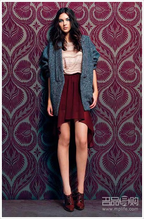 内敛,充满了设计质感的背景墙,对上红吱吱的亮红色,Sergi Jasanada 镜头底下这两种截然不同的呈现方式,已经透露出大姊姊Bershka 和小妹Bsk 鲜明的个性。随着过完万圣节之后,紧接下来便是年底的圣诞节了,所以2011年11月Bershka 除了有利用衬衫、牛仔裤、针织洋装、短裙、斗篷外套、流苏夹克、牛津跟鞋等单品混搭出各种或俏丽、或俐落、或中性的装束外,另有两组散发迷人女人味的派对装,很精采的系列!而带有活泼少女心的Bsk,表现也是不俗。