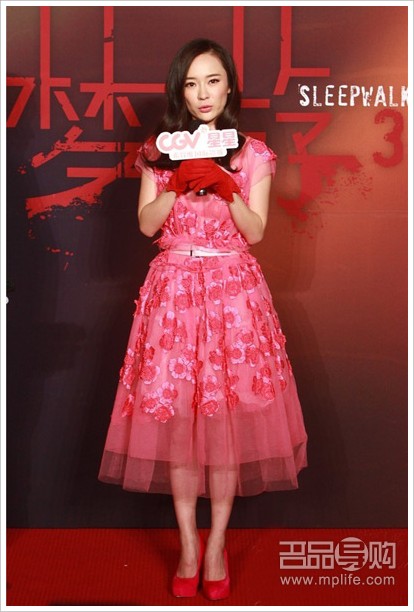 在悬疑电影《梦游3D》的宣传会上,霍思燕里桃红色绣花透视裙性感响亮,薄如蝉翼的裙装透出内穿的同色系胸衣,十分大胆,“人面桃花相映红”的娇媚!