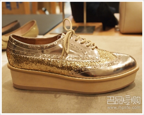 小编点评:学院风的牛津鞋面加入亮片,带给人华丽的感觉,加厚的鞋底无形当中增加你的高度,却又非常舒服。