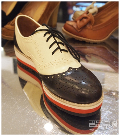 小编点评:漆皮的材质具有强烈的复古感,搭配布洛克鞋型。营造50年代的复古情调。