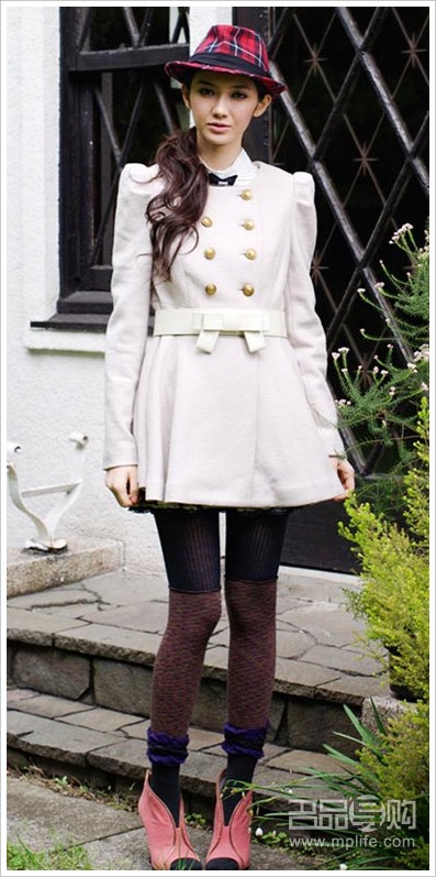 在冬季想拥有淑女范,白色过膝毛呢外套再合适不过。加上白色的围巾和配饰,让人尽显高贵、优雅的气质,但是在白茫茫一片下,搭配的底纹黑丝袜和香槟色缎面高跟收缩了视觉的膨胀感,又不破坏整体的气质感觉。