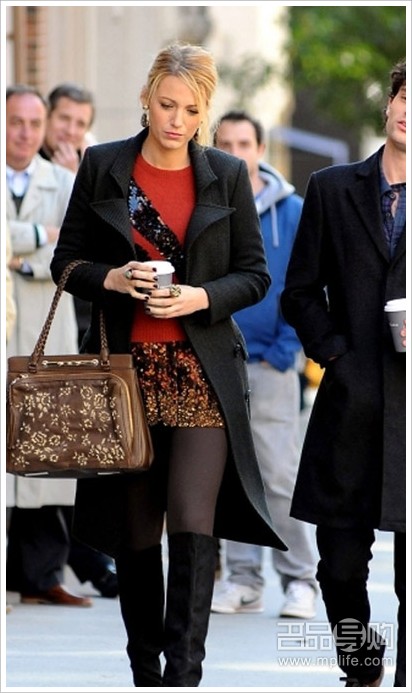 Blake Lively这件大衣属于比较经典的款式,简洁利落,却很能凸显穿着者的身段优势。搭配经典的黑色长靴,突破经典的闪亮亮片小短裙,给人感觉整体焕然一新,冬天同样灵动。