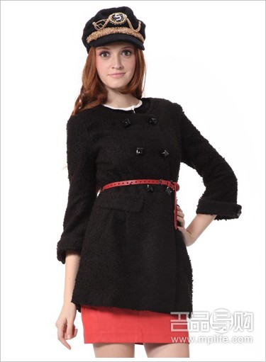 太平鸟2011黑色双排扣新款大衣