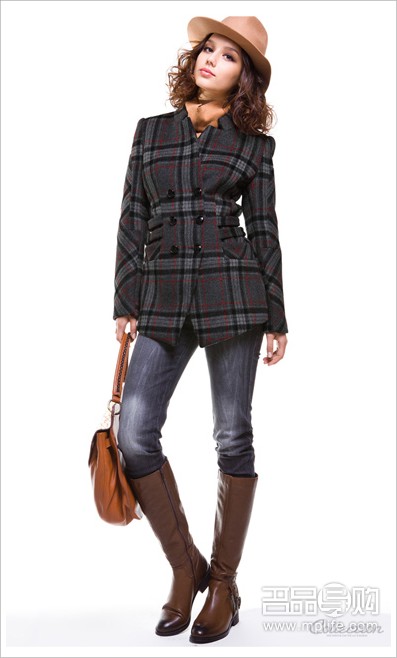 太平鸟2011正品女装冬季格纹大衣