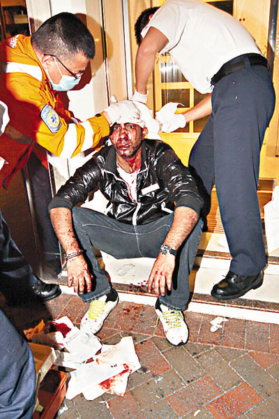 遭同乡袭击南亚裔青年26岁,前晚往友人家中饮酒谈天,至昨凌晨4时许离开,但独自步经红磡马头围道33号至37号红磡广场一间便利店对开时,附近突衝出20多名同乡包围施袭,事主除被拳打脚踢外,有人更以水喉铁猛扑其头部,他当场血流披面,不支倒坐在一间银行门前待救,途人见状代為报警,眾煞逞兄后四散而去。救护员到场替事主包扎再送往医院,经治疗后已无碍出院。大队警员则四出兜截,惜无发现,仅在路边检获一枝水喉铁和一部手提电话。未几,伤者友人亦闻讯赶至,协助警方调查案件动机。