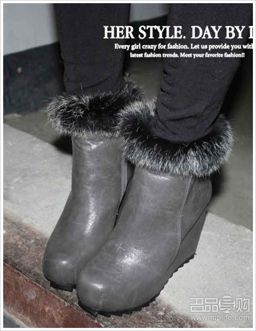 韩国时尚街头休闲侧拉链厚底内绒毛中筒短靴,增添许多的复古气息,小露性感却不过分张显哦。