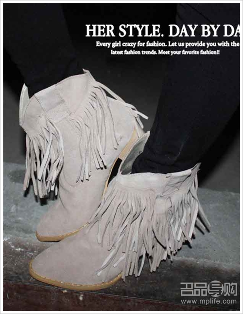 时尚潮流休闲百搭磨砂真皮高跟流苏靴,散发强大艺术气场!潮爆推荐,韵含着女人的青春亮丽。