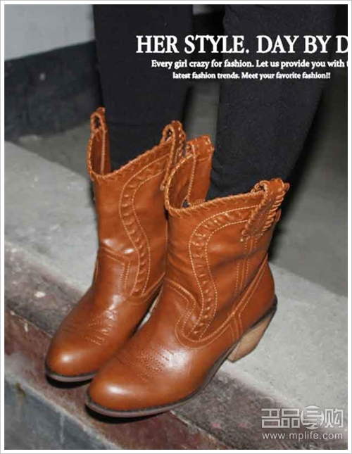 欧美复古时尚休闲串线简约平跟中筒靴,尽显名媛淑女风范,浓浓的欧式气息。
