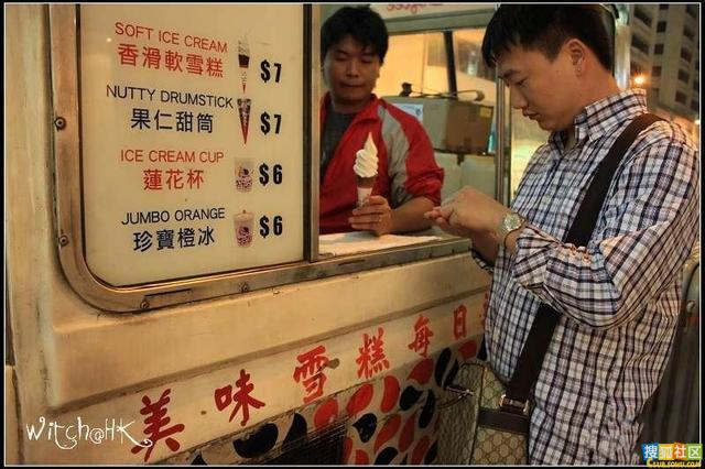 9,12月23日的深夜,几乎所有的店铺都已关门,但路上的行人还是来去匆匆。卖雪糕的小车停在繁华的广东道,只HKD7 可以让世界很好,少些疲劳
