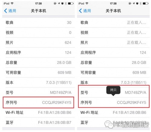 3、找到“序列号”一栏,长按序列号一栏就会弹出拷贝选项复制该序列号了!