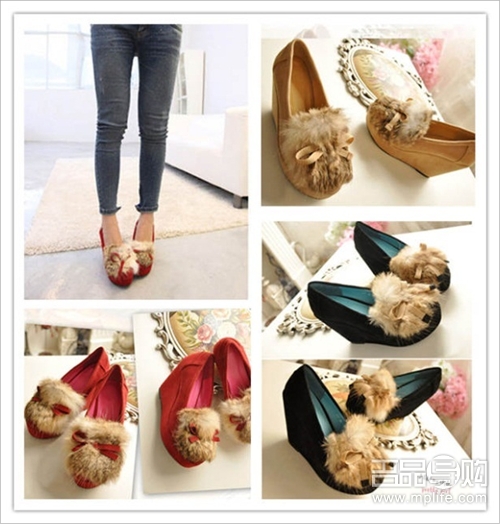 今年实在太多兔毛的鞋子了,这款坡跟的兔毛短靴有点小性感哦,毛毛惹人爱!!