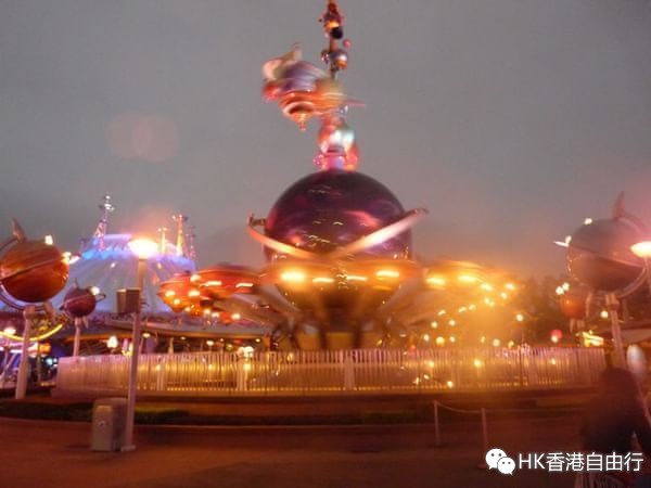 太空飞碟(推荐指数:***,排队的人不算多,刺激度不够,不过晚上看这个游乐设施是很漂亮的,玩起来就是一般的上上下下之类的,和幻想世界的小飞象旋转世界很像)