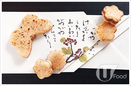 属秋冬期间限定甜品,底面两层用糯米制成,甜度极高,上桌前先用火烧至焦香,再夹着栗子蓉,咬落有点脆口。裁成蝴蝶及花形,像一幅优美的图昼。