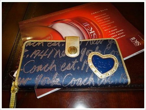 Coach 蓝色爱心帆布钱包