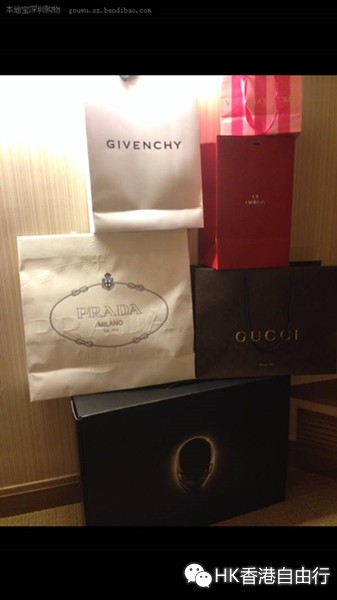 接着去离酒店最近的血拼圣地海港城入了gucci男士帆布休闲包(HKD9900)、prada新款红色杀手(hkd17900)、victorinox登机箱(这和人民币大概3500+)